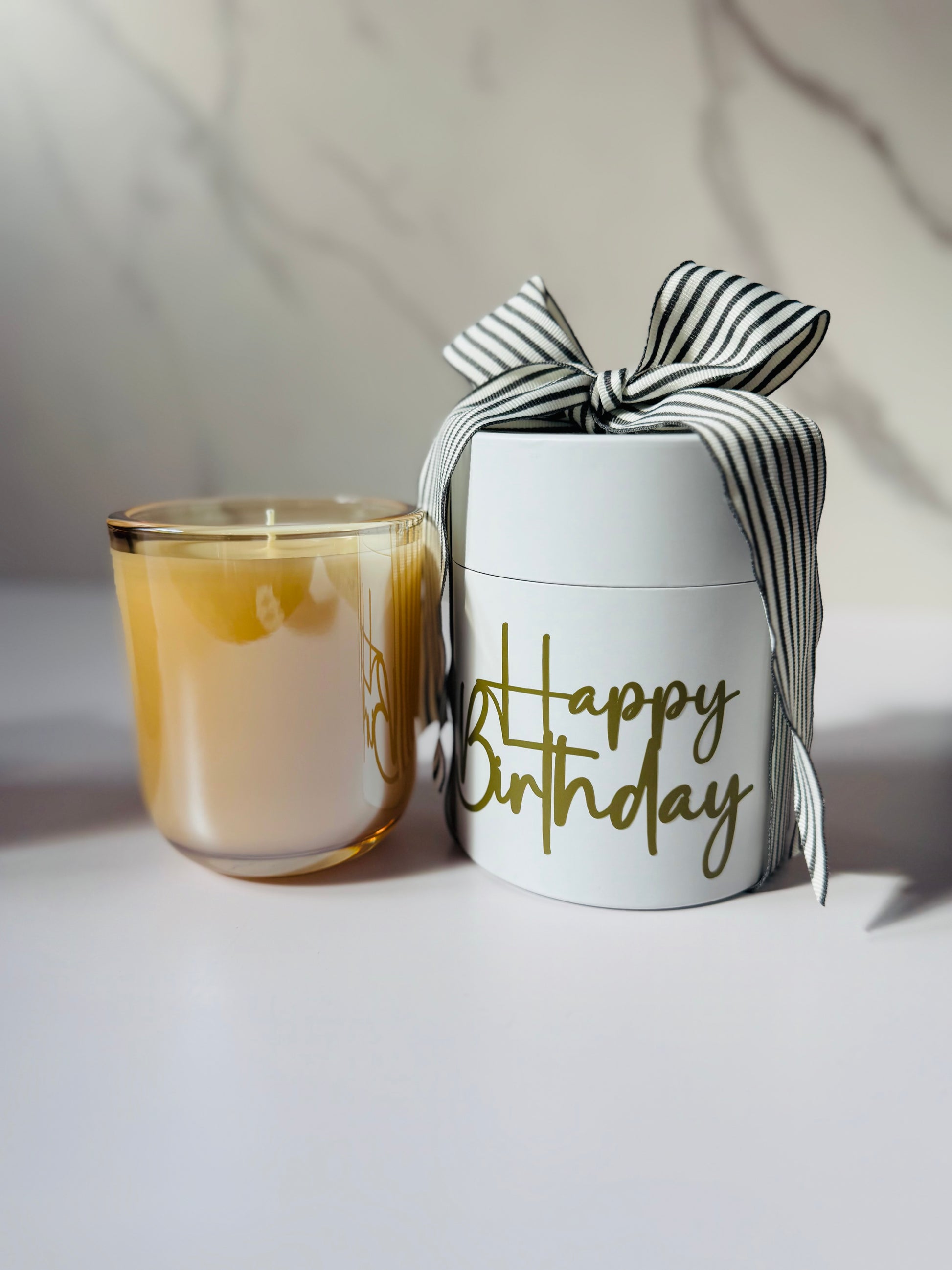 Celebrate life’s special moments with our hand-poured 12oz candle in a soft champagne glass vessel. Beautifully packaged with your choice of Happy Birthday, Cheers, or Thank You gift wrap, each candle is made with clean, non-toxic ingredients—completely free from anything on California’s Prop 65 list. It’s a thoughtful, elevated gift that feels personal, intentional, and ready to delight.